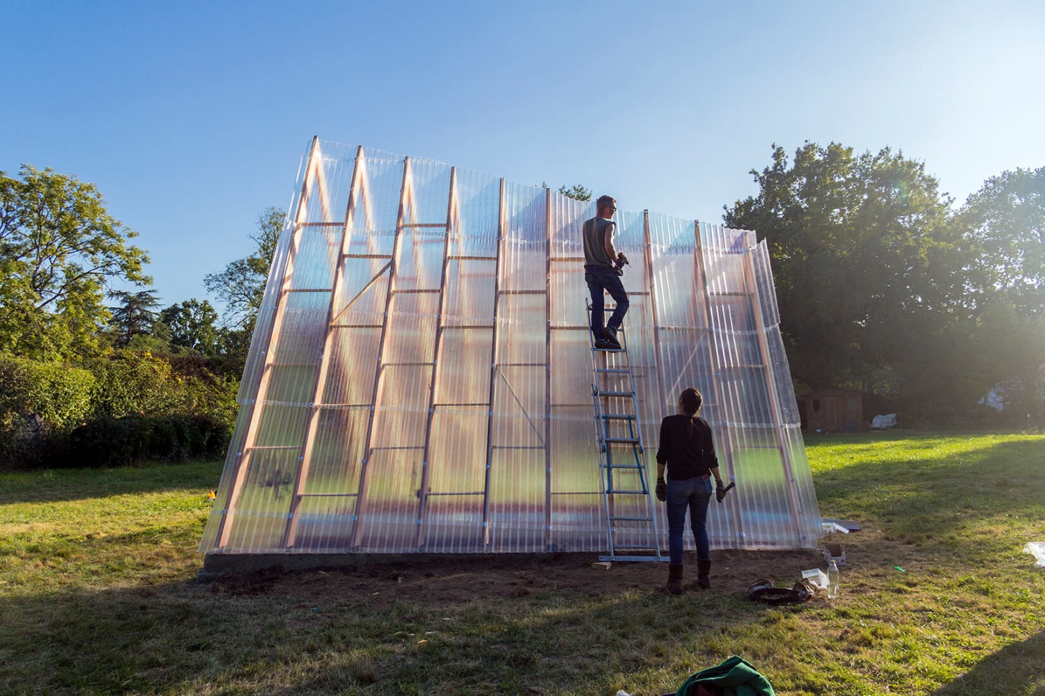 Построихме нещо, което се превърна в съзерцателно преживяване - структура, при която ресурсите си взаимодействат в балансирана среда. В тази нова микроклиматична обстановка, топлината и шепотът на вятъра се движат заедно, докато природата попива създадената от тях форма. Потърсихме и следи от археологични находки и проучихме архиви от римските оранжерии, датиращи от 13 век. В крайна сметка всичко доведе до изграждането на зелена къща/ оранжерия от естествени материали, която принадлежи на това специално място.