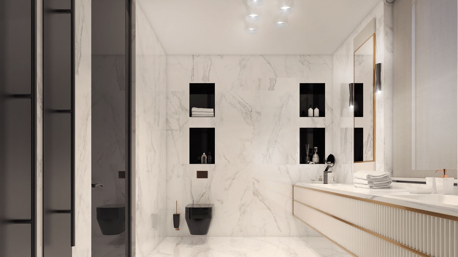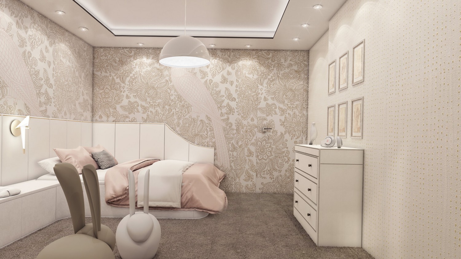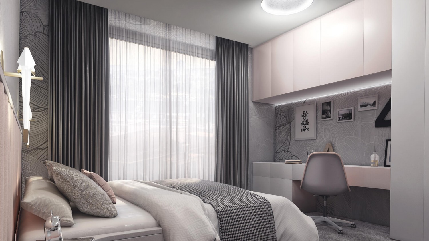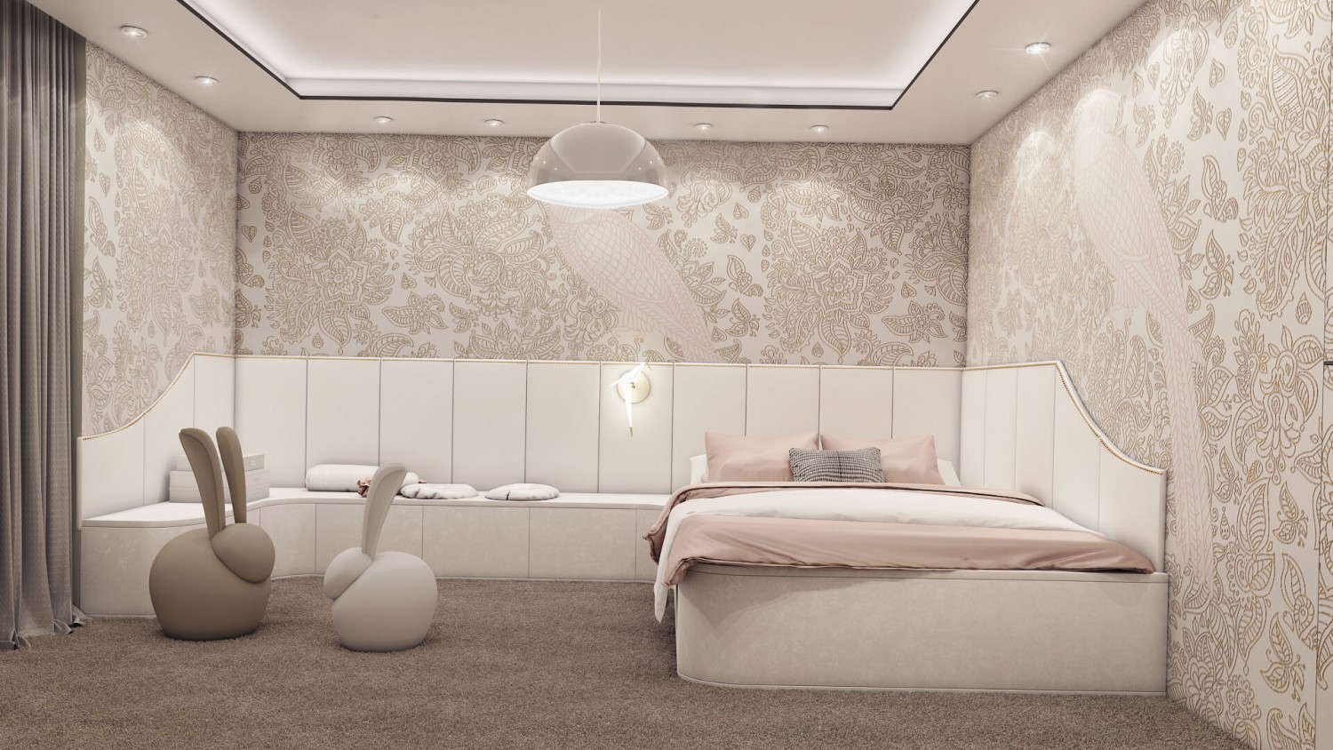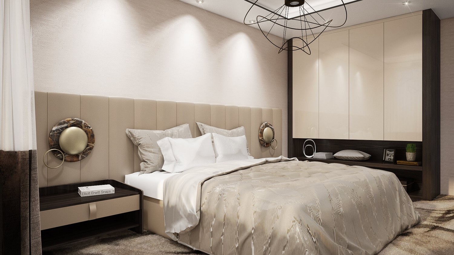 Концепцията започна с личната история на семейството и желанието им да вплетем хармония и лукс, което доведе до идеята да създадем тази уникална „дзен лукс” визия за бъдещия им дом. Цветовата палитра за този проект е семпла, тя се състои основно от нюансите на бежовото и сивото, които контрастират с дизайнерски решения в ярко синьо. Масивното осветление, копринените тапети и уникалните елементи, изработени по поръчка, подчертават съвършенството на пространството, осигурявайки чувство на динамика. Стилната комбинация от материали и текстури като естествен камък, кристални елементи, кадифе и полиран месинг, акцентира върху естествената светлина и създава приглушено усещане за лукс.